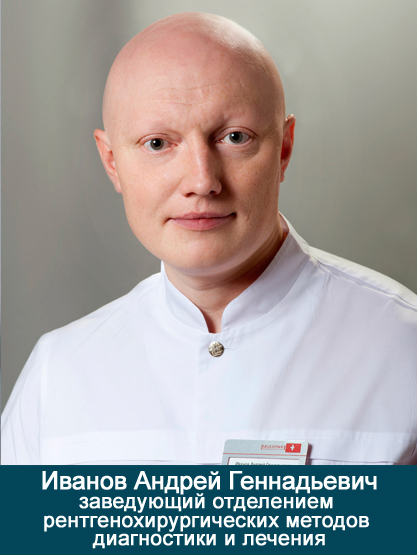 Иванов Андрей Геннадьевич (заведующий отделением рентгенохирургических методов диагностики и лечения, врач высшей категории по специальности “рентгенэндоваскулярная диагностика и лечение”)